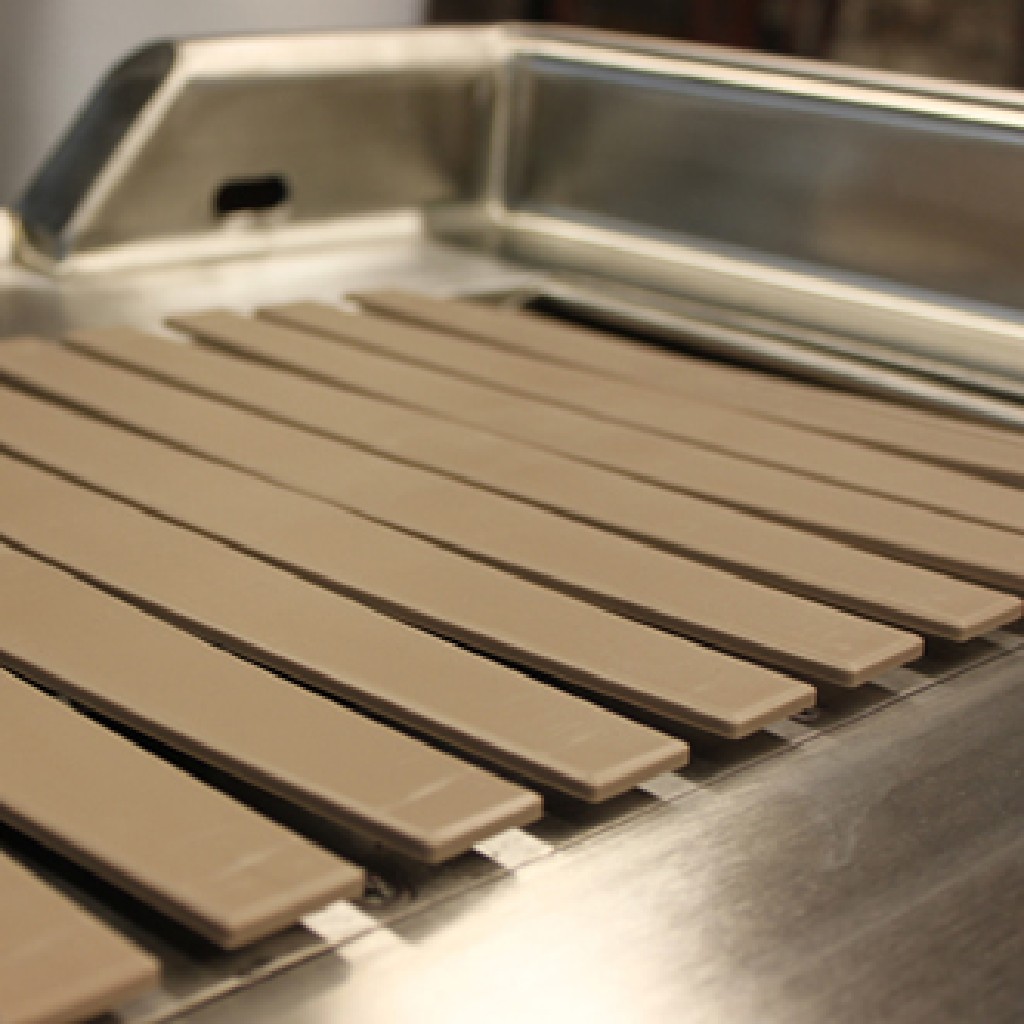 Peel & stick down 1/32” or 1/16” UHMWP, not designed for wet environments, also uses a UHMWP for slates or no wearstrips. | Varies, some systems have no wear strips | Peel & stick down 1/32” or 1/16” UHMWP, not designed for wet environments or no wear strips |